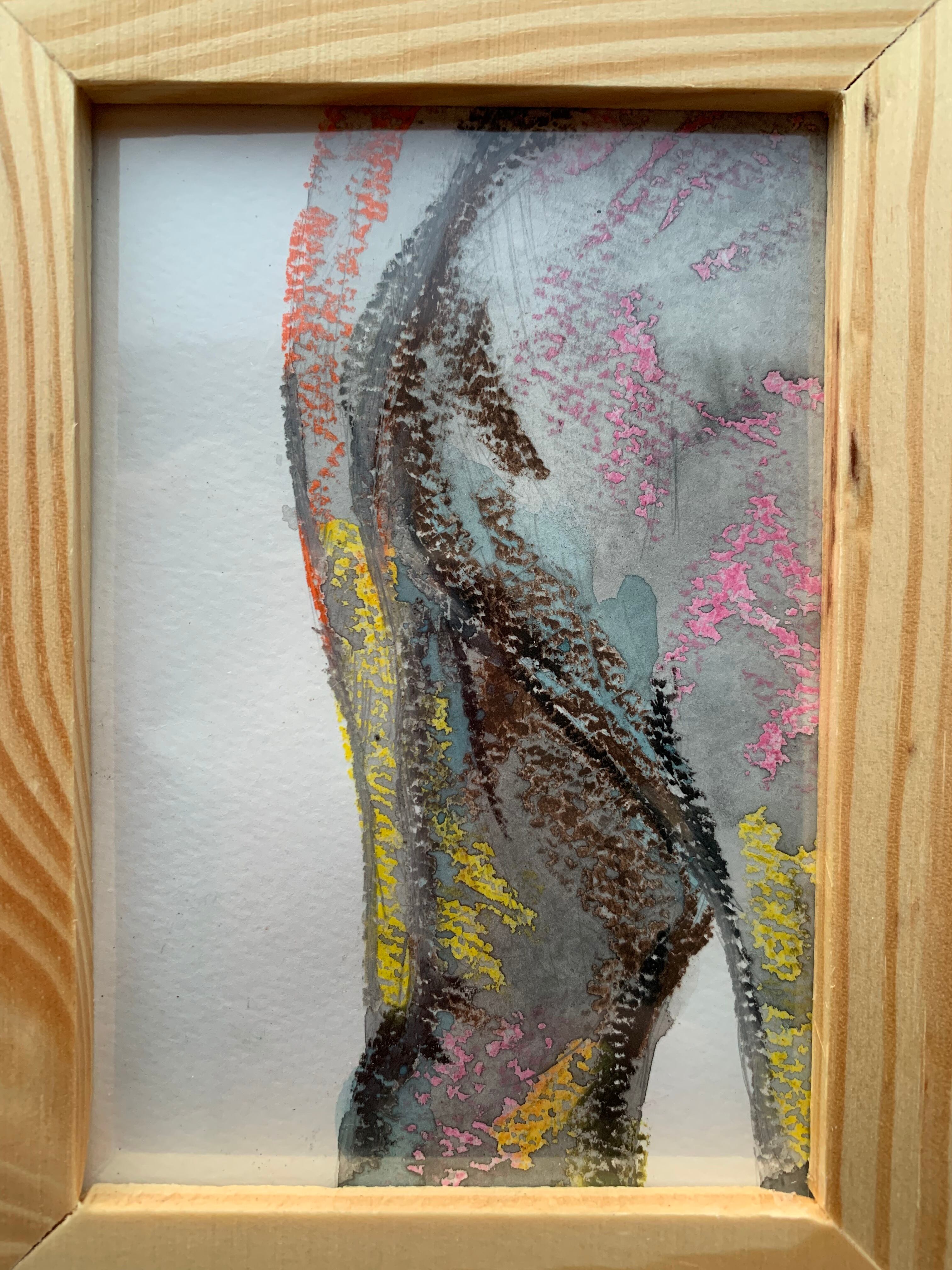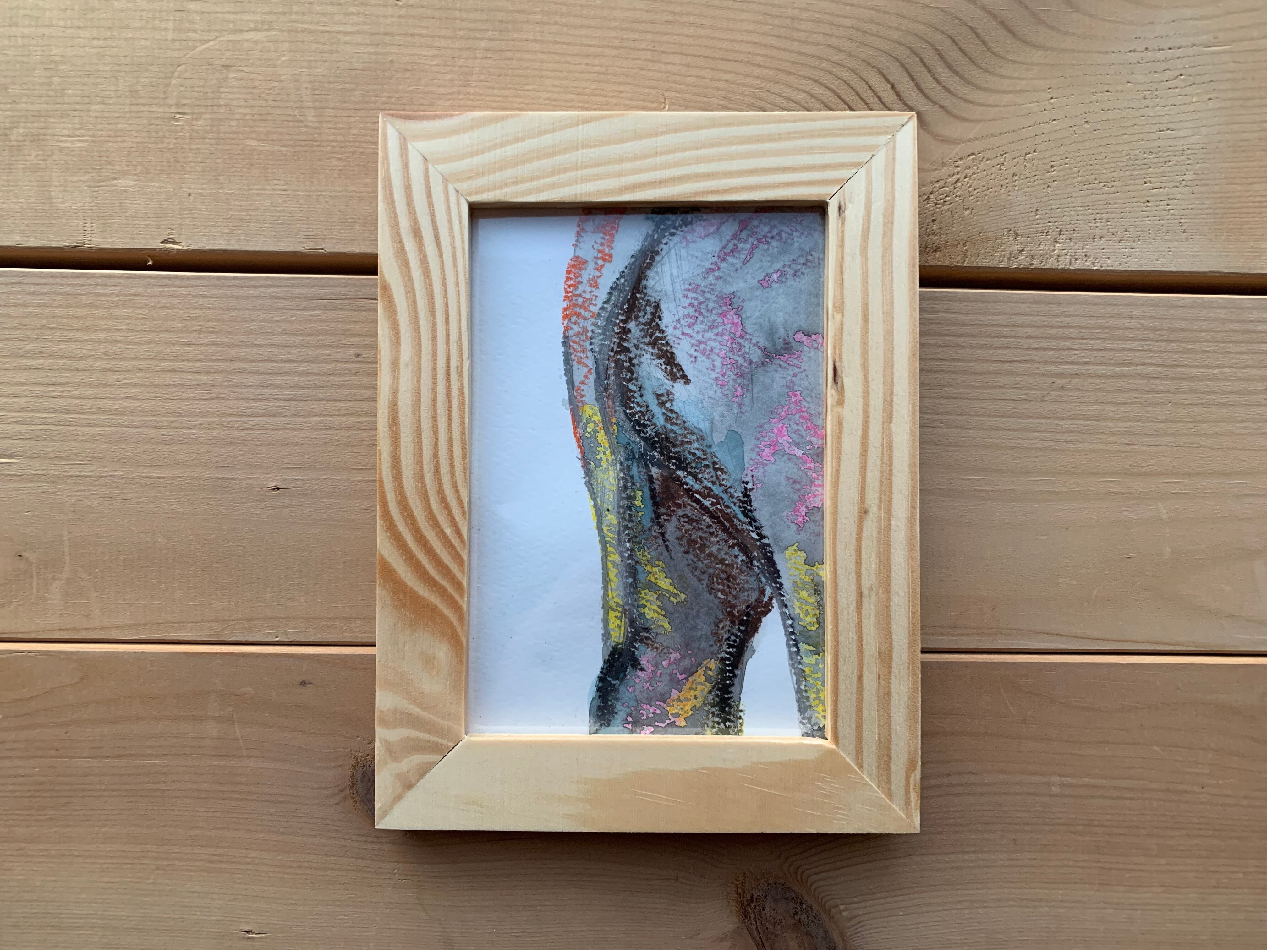 これは、クレヨンと水彩で描かれたかわいい象のしっぽです。色鮮やかな絵柄と柔らかな質感が特徴で、玄関やリビングなどのインテリアにぴったりです。