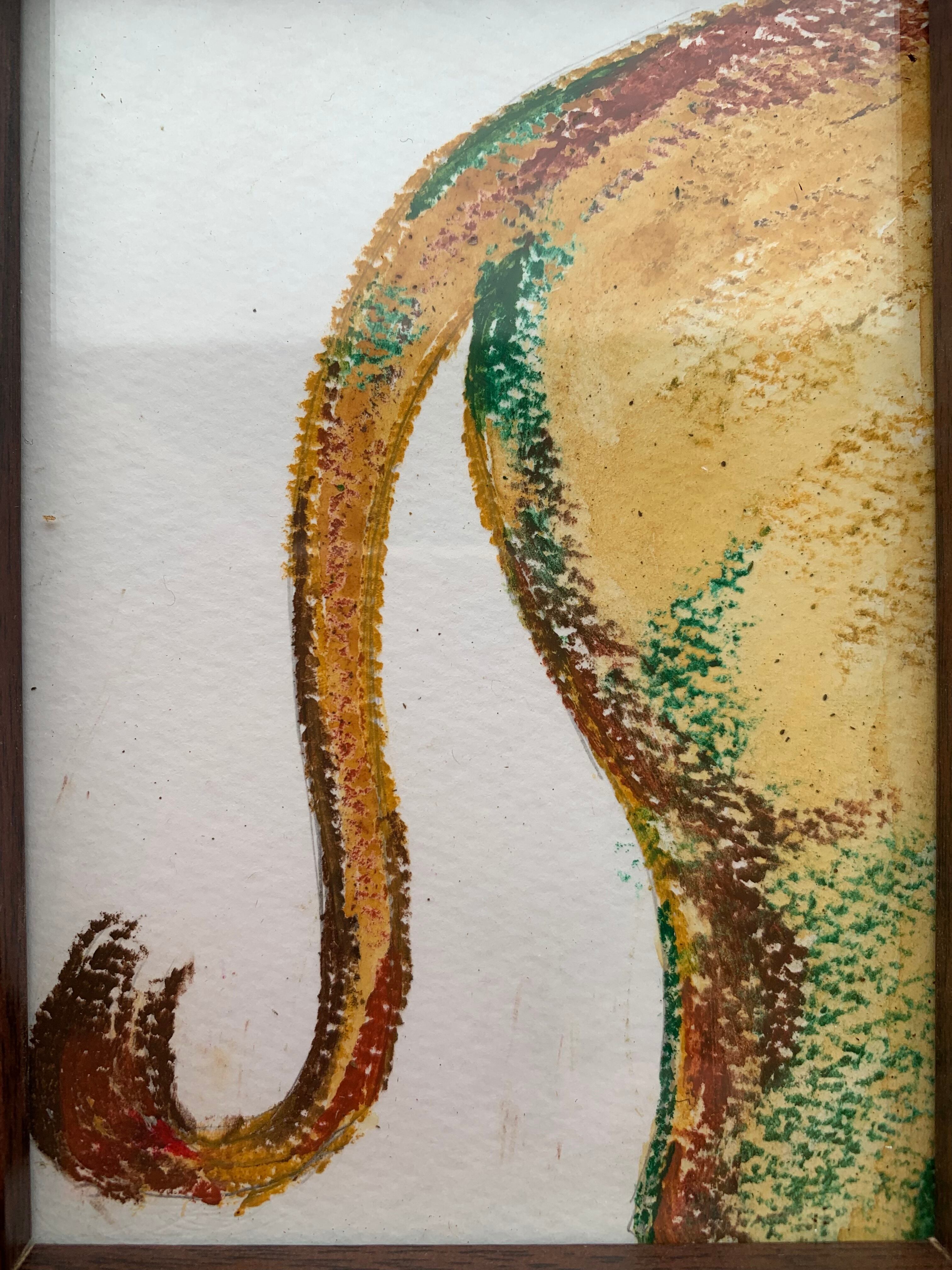 L判サイズ、約12.7cm×8.9cmのしっぽの絵が フォトフレーム(縦18cm×横13cm)に入っています。 クレヨンと水彩画のミックスです。